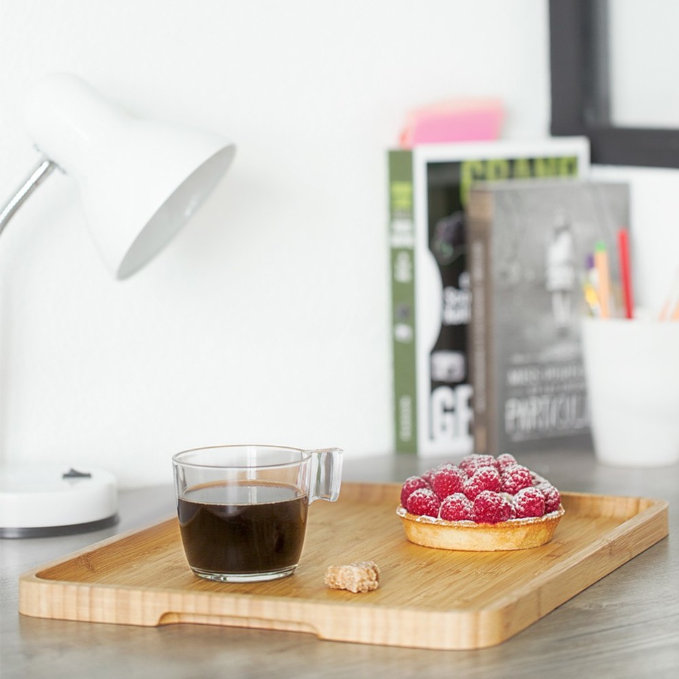 Le plateau Plebby est en bambou, une herbe qui pousse si rapidement qu'elle peut se récolter plusieurs fois par an. Très résistant et peu poreux, c'est un bois idéal en cuisine. Votre plateau se nettoie donc facilement.