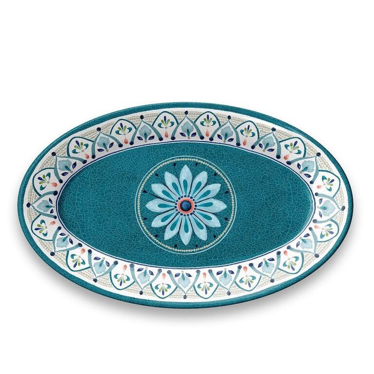 Fabriqué en Italie, ce plateau oval est parfait pour le service de table pour de grandes occasions. Ses couleurs chaudes et ses formes rappellent la Méditerranée.