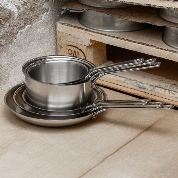 Finition Brossée et Brillante : L'esthétique de la collection 1826 marie subtilement une finition brossée sur le corps de la poele avec des poignées et des anses brillantes, créant ainsi un contraste élégant.