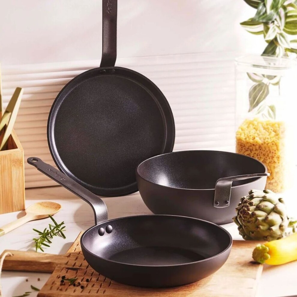 Spécialement conçue pour les amateurs de crêpes, cette poêle de 30 cm allie performance, santé et durabilité. Son corps en aluminium forgé recyclé assure une répartition de la chaleur rapide et uniforme, pour cuire chaque crêpe de manière impeccable.