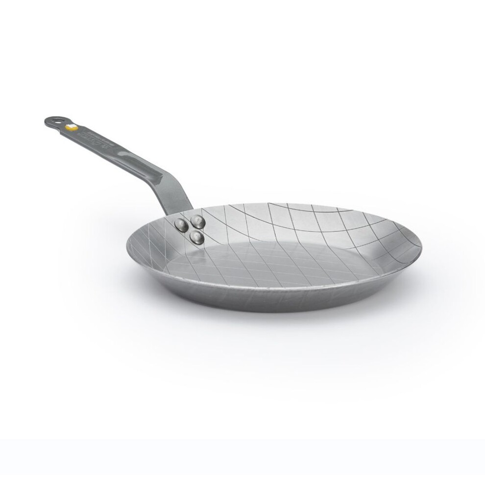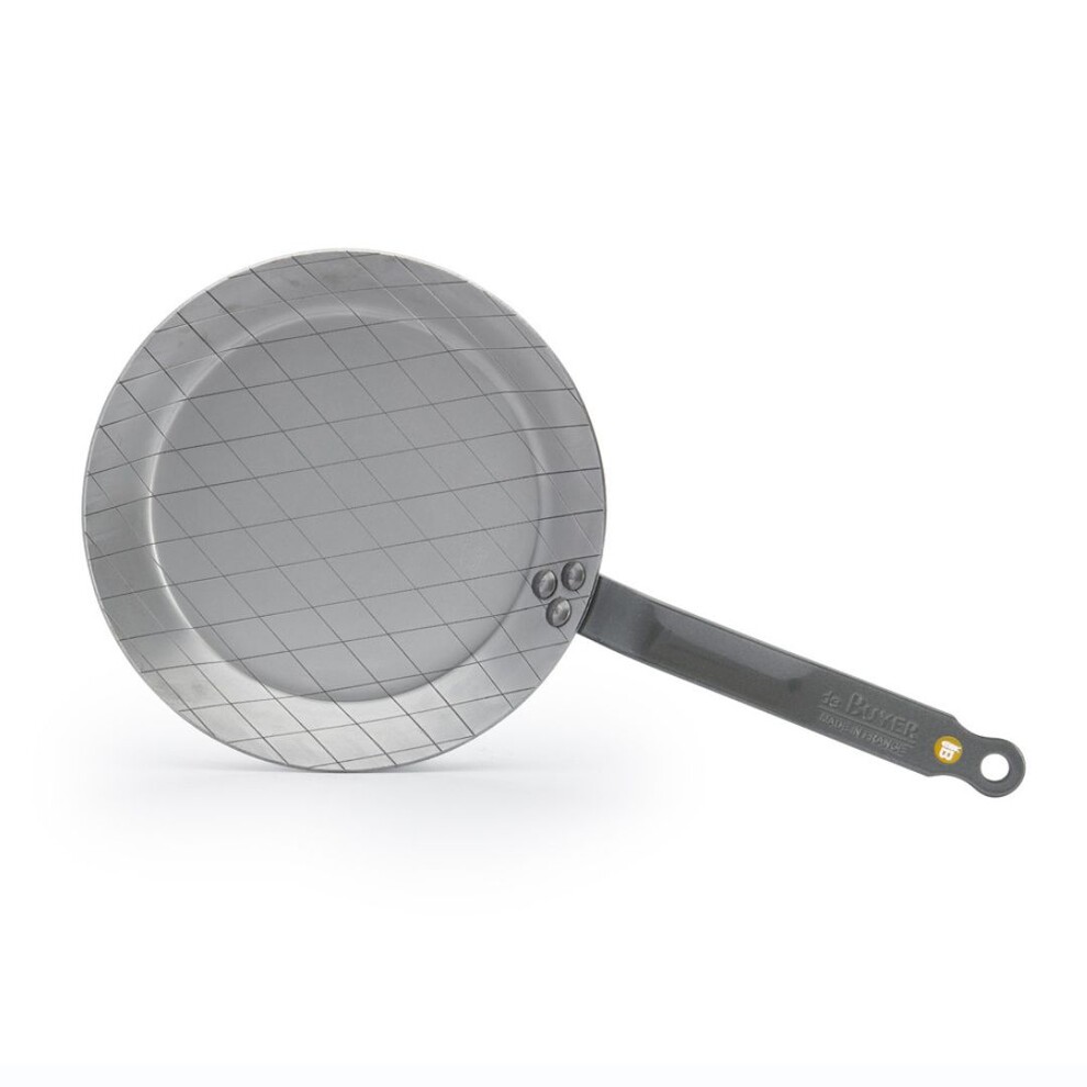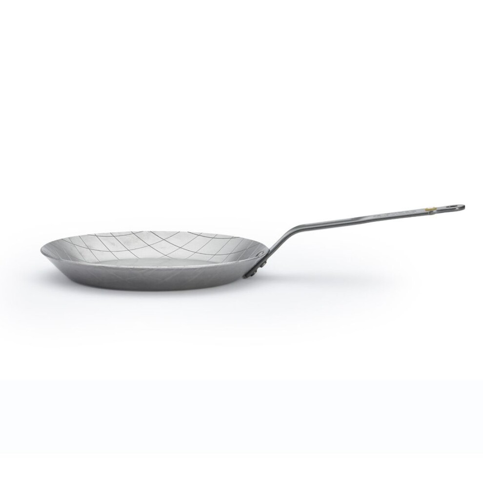 L'ustensile Mineral B Element est en tôle d’acier blanche revêtue de cire d’abeille, offrant une protection temporaire contre l’oxydation et facilitant le culottage. Il présente un effet antiadhésif amélioré dès la première utilisation. Sa jupe épaisse est indéformable, assurant une excellente caramélisation des aliments. L'antiadhérence naturelle se développe progressivement avec le culottage. La queue rivetée, courbée à la française, permet une manipulation facile et ergonomique.