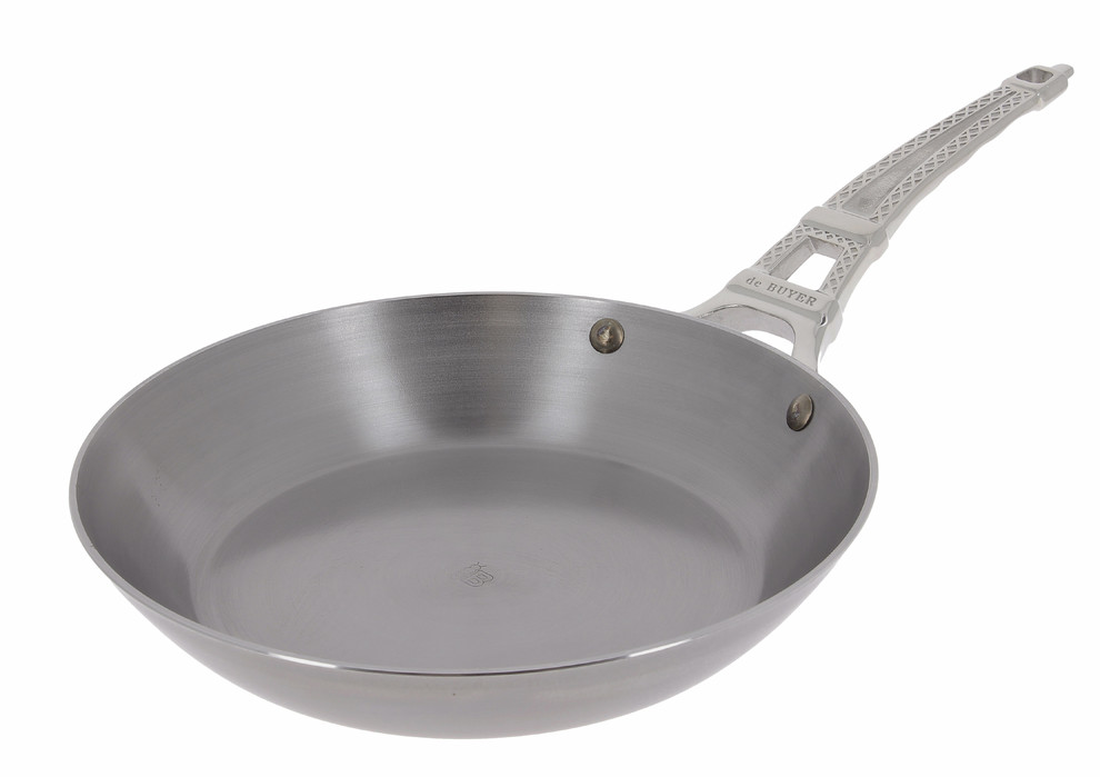 Poêle coupe lyonnaise pour faire glisser facilement les aliments dans un plat ; idéale pour saisir, griller, dorer.
