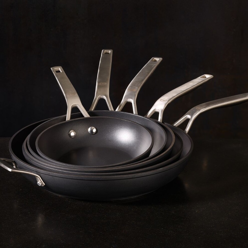 Les 5 tailles différentes offrent donc un large spectre pour toutes les exigences et tous vos plats préférés. La poêle en aluminium forgé se caractérise par une répartition rapide et uniforme de la chaleur. La poignée en acier inoxydable riveté à la fois chic et moderne, assure une prise en main sûre.
