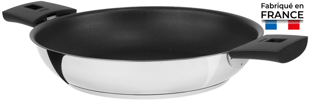 La poêle haute en inox 18/10 de la collection Mutine de Cristel, de type "lyonnaise", est parfaite pour saisir les viandes grâce à la qualité de son fond diffuseur tout en préservant les qualités gustatives des aliments. Le revêtement anti-adhérent Exceliss® garanti sans PFOA permet de faire revenir et de cuisine sans attacher des poissons, pommes de terre, oeufs ...
