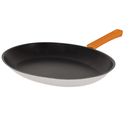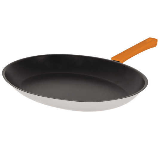 La poêle ovale ø 35 cm inox revêtue de l’anti-adhérent Exceliss de la collection Mutine à poignée fixe orange