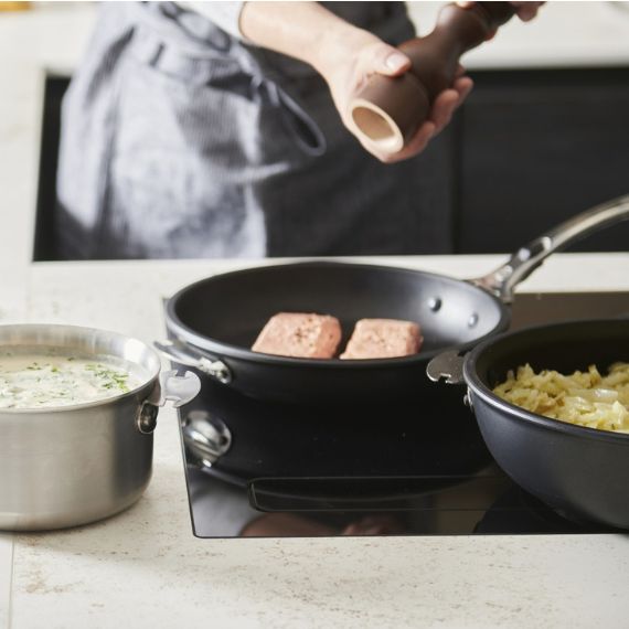 La cuisson régulière et contrôlée assurée par la fonte d'aluminium épaisse permet notamment de cuisiner en douceur des mets délicats, tels que certains poissons. La glissance exceptionnelle du revêtement permet de cuisiner avec très peu de matière grasse.