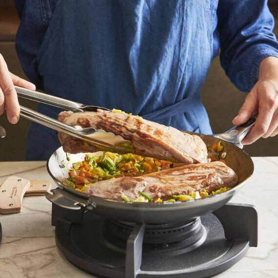 Ustensile polyvalent pour saisir, griller, dorer et poêler. Idéal pour les viandes, poissons sur peau, pommes de terre. A utiliser avec un peu de matières grasses.