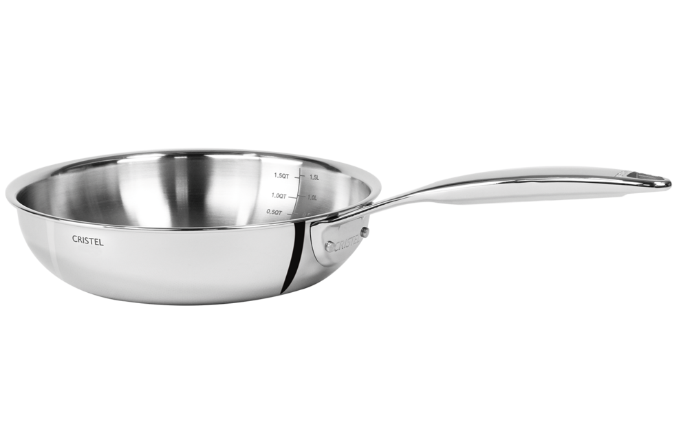 La Poêle sautoir 16 cm Castel pro 5 possède un fond thermo-diffuseur à 5 couches, composées d'aluminium, d'inox et d'inox 18/10, ce qui permet une diffusion homogène de la chaleur dans tout l'ustensile de cuisson, et non seulement au niveau du fond. L'absence de fond rapporté permet une rapidité de montée et de descente de la température et la forme ronde de l'ensemble est idéale pour mélanger, cuire et monter les sauces.