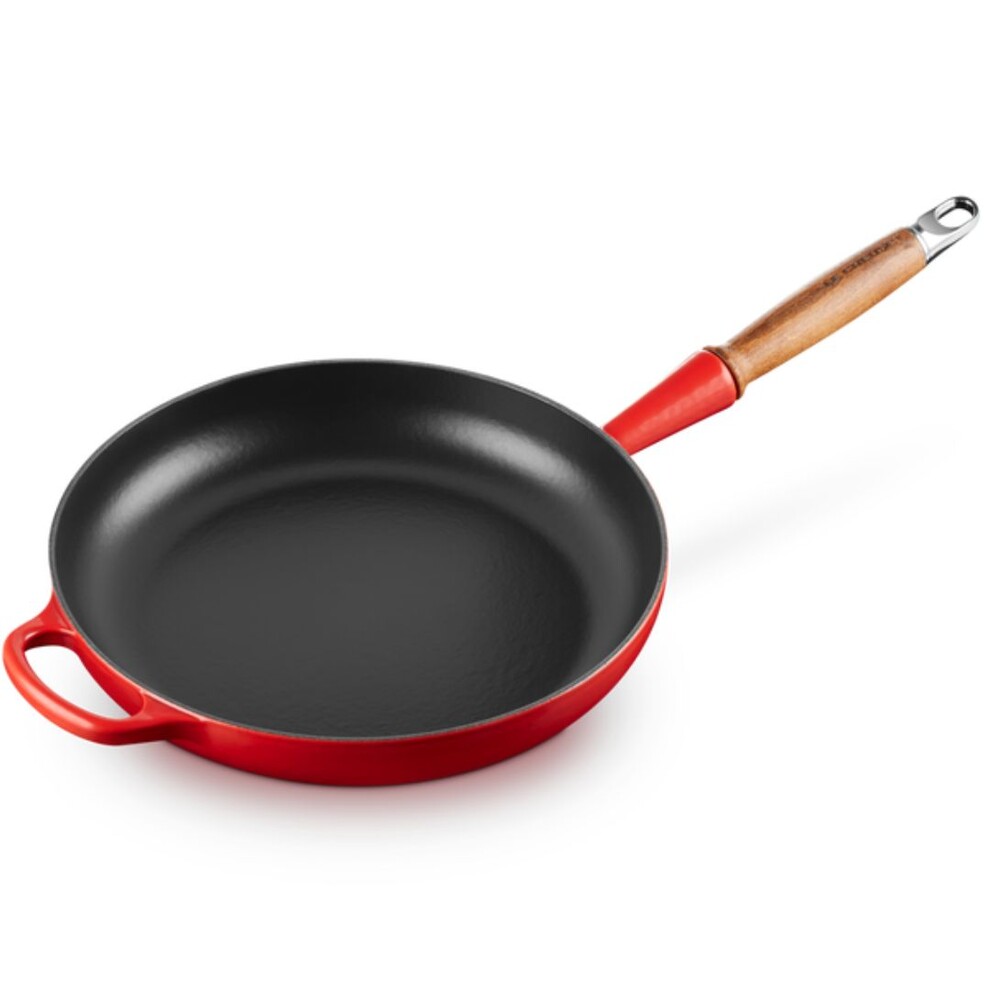 La poêle signature de la marque Le Creuset en fonte émaillée répartit uniformément la chaleur et permet de bien saisir vos aliments.