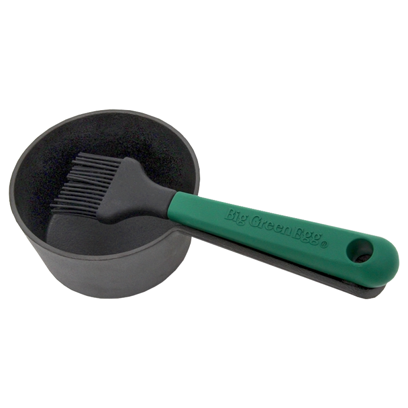 Ce poêlon à sauce fabriqué fonte est parfait pour faire fondre du beurre ou réchauffer simplement vos sauces et marinades directement sur votre Big Green Egg, grâce à sa structure qui garantit une répartition uniforme de la chaleur. Livré avec un pinceau à badigeonner en silicone, celui-ci s'emboite parfaitement dans la poignée du poêlon et reste en place.