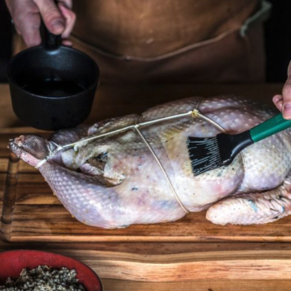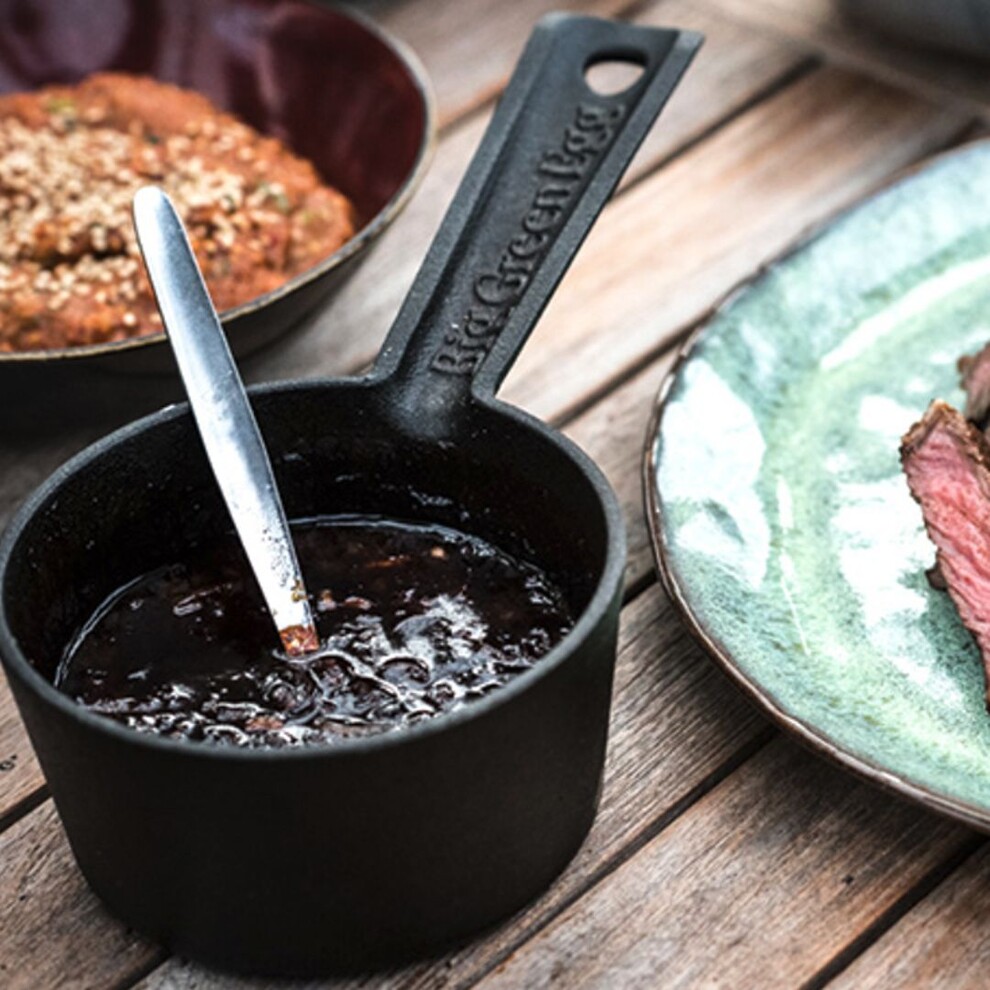 Ce poêlon en fonte, solide et durable, est idéal pour faire fondre du beurre ou réchauffer des marinades et des sauces barbecue. Il est accompagné d'un pinceau à badigeonner sans BPA, conçu pour éviter les dégâts, qui se place confortablement sur la poignée de la casserole. La tête du pinceau, amovible et en silicone, peut être lavée au lave-vaisselle pour un entretien simplifié.