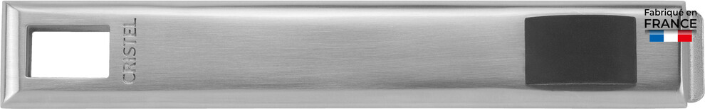 Pour les amoureux de l'inox, Cristel a imaginé une poignée amovible en inox brossé, parfaitement assortie aux casseroles et autres ustensiles de cuisson de sa collection "L"(Strate).
