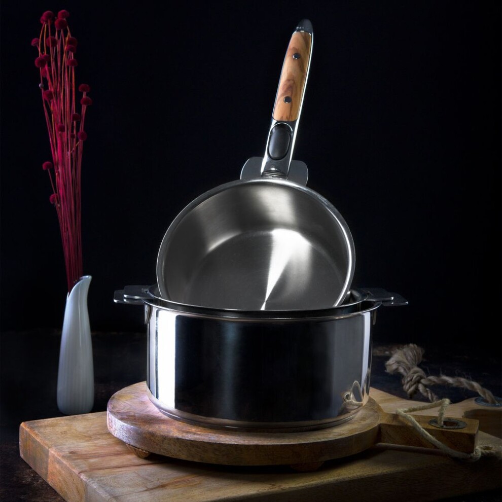 Les poignées zenith s’adaptent à tous vos ustensiles de cuisine des collections amovibles Cristel. En effet, casserole, sauteuse ou poêle ; passez de l’un à l’autre en un geste simple grâce aux anses amovibles.