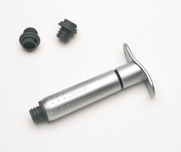 - Il suffit d'insérer le bouchon en caoutchouc dans le goulot de la bouteille puis d'emboîter la pompe à vin sur la valve du bouchon. Ensuite, pompez et lorsqu'une résistance se fait sentir, le vide est fait.
