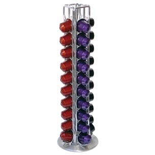 Grâce à son ingénieux système d’empilage vertical, le porte-capsules Nespresso pivotant « à fils » vous surprendra par sa grande capacité et vous permettra de loger jusqu’à 40 capsules très facilement accessibles en partie haute de sa structure, (il peut porter jusqu’à 10 capsules dans chacune de ses 4 galeries de rangement verticales), afin que votre café préféré soit toujours à portée de main.