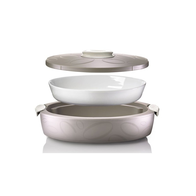 Cuire au four traditionnel ou micro-ondes et conserver votre plat pendant des heures, c'est possible avec ce Porte-plat Isotherme.