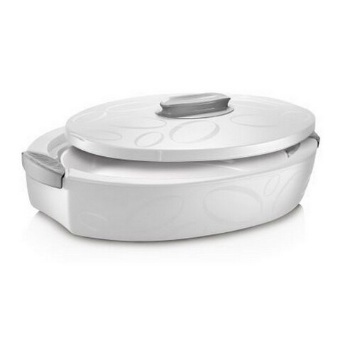 Le corps du porte-plat est composé d'une double paroi et d'une isolation technique indispensable pour le transport, le service hygiènique et les performances thermiques exceptionnelles. Le plat en grès blanc fourni convient aux cuisson au four et au micro-ondes et se cale parfaitement du porte-plat pour un maintien pendant 3 h aussi bien chaud que froid. Les poignées de verrouillage latérales pratiques garantissent que le serveur reste correctement fermé; |
