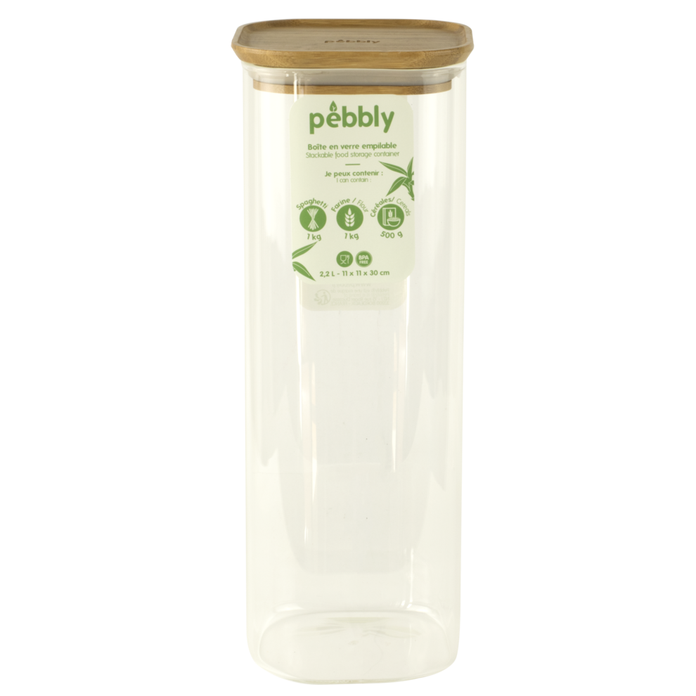 Accueil > Maison > Conservation des aliments > Pot en verre carré 2,2l avec couvercle en bambou