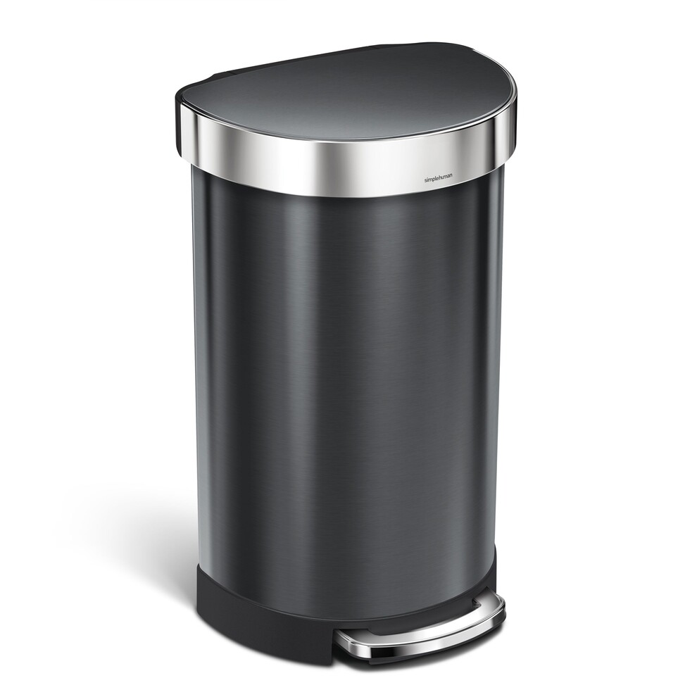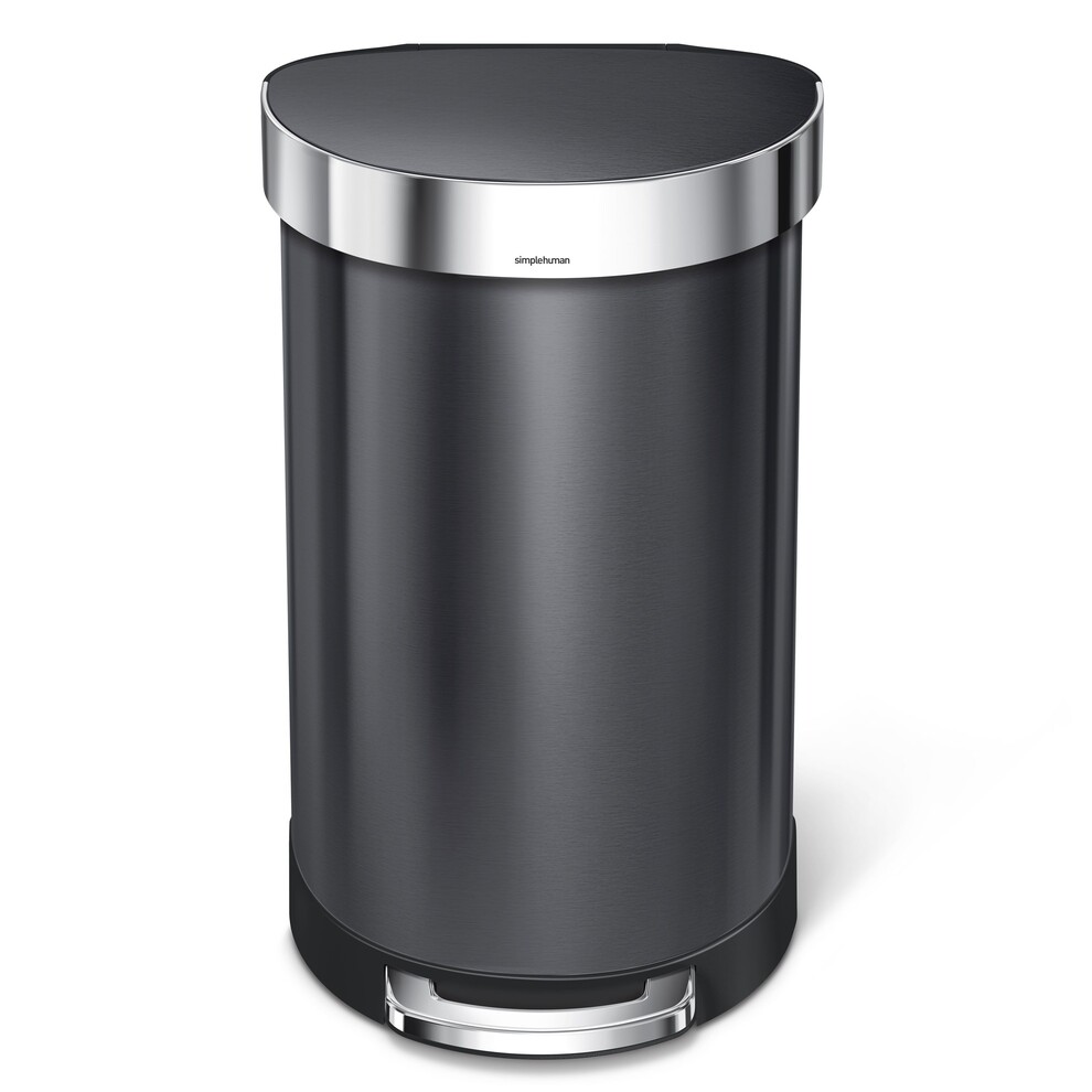 Poubelle Demi-Lune à Pédale 45 Litres, Compartiment Simple, Acier Inoxydable Noi