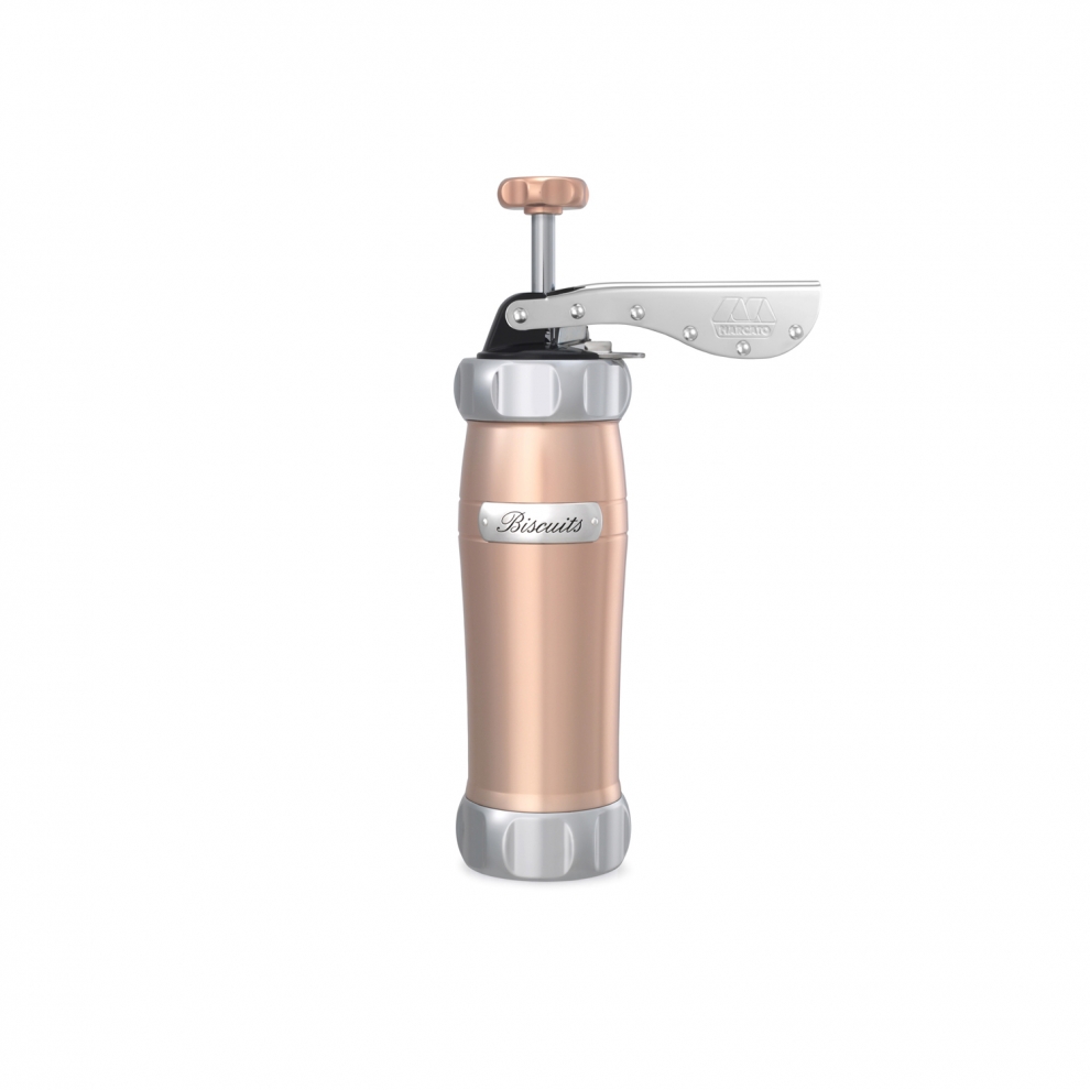Les amoureux de pâtisserie seront aux anges avec cet appareil aussi beau que perfectionné. Doté de 20 disques amovibles interchangeables, ce presse-biscuits vous permettra de confectionner autant de formes différentes de biscuits. Ceux-ci pourront au choix être garnis ou décorés, selon l'envie ou l'occasion du moment.