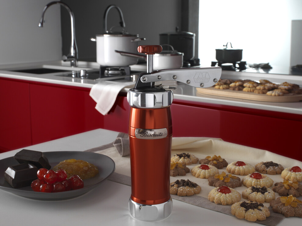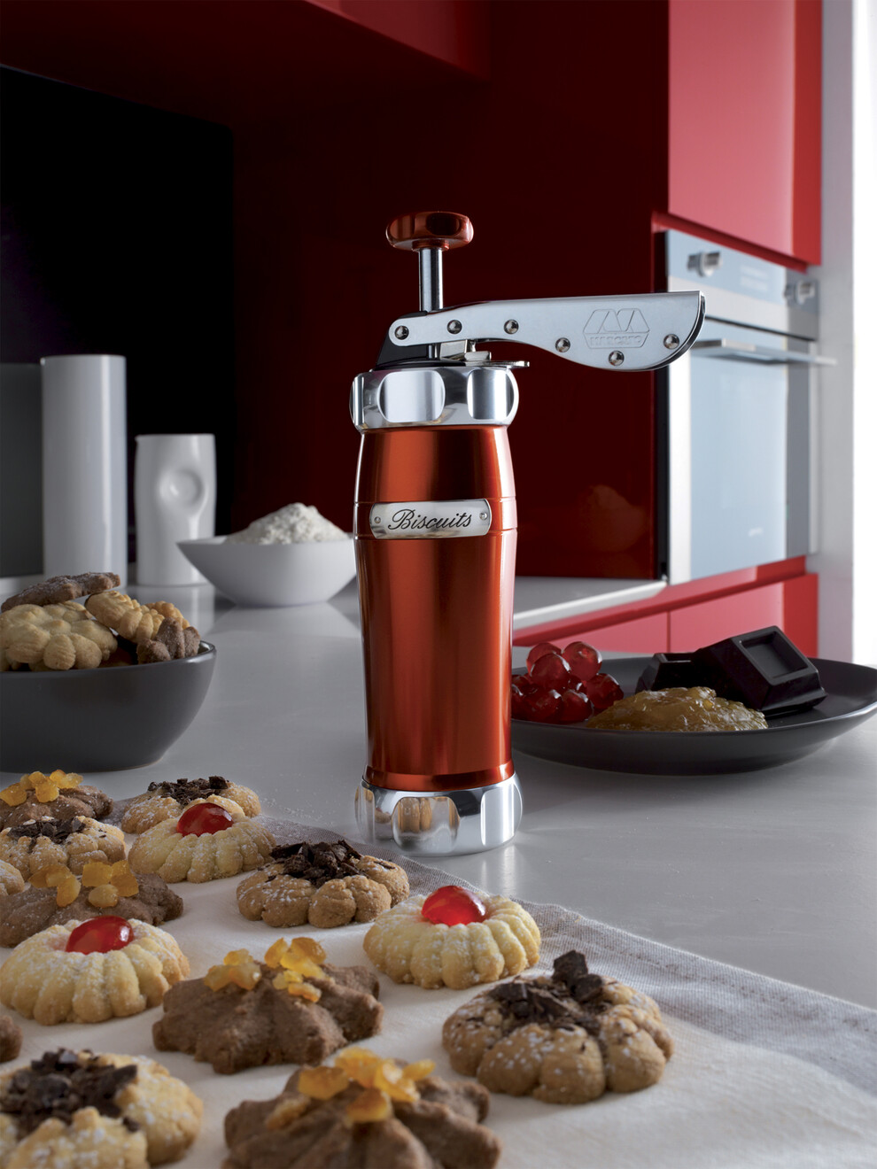 Le presse-biscuits Marcato est l'outil idéal pour confectionner de nombreux biscuits maison. C'est l'occasion de convier les enfants en cuisine pour préparer tous ensemble les fameux biscuits de Noël alsaciens ou les "short breads", ces délicieux biscuits sablés écossais, ou encore des cookies comme aux USA.