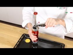 La presse à biscuits Marcato se distingue par une remarquable facilité d'utilisation : une seule charge de son cylindre et un simple appui sur son manche suffiront à réaliser de 20 à 25 grands biscuits ou de 35 à 40 petits biscuits.