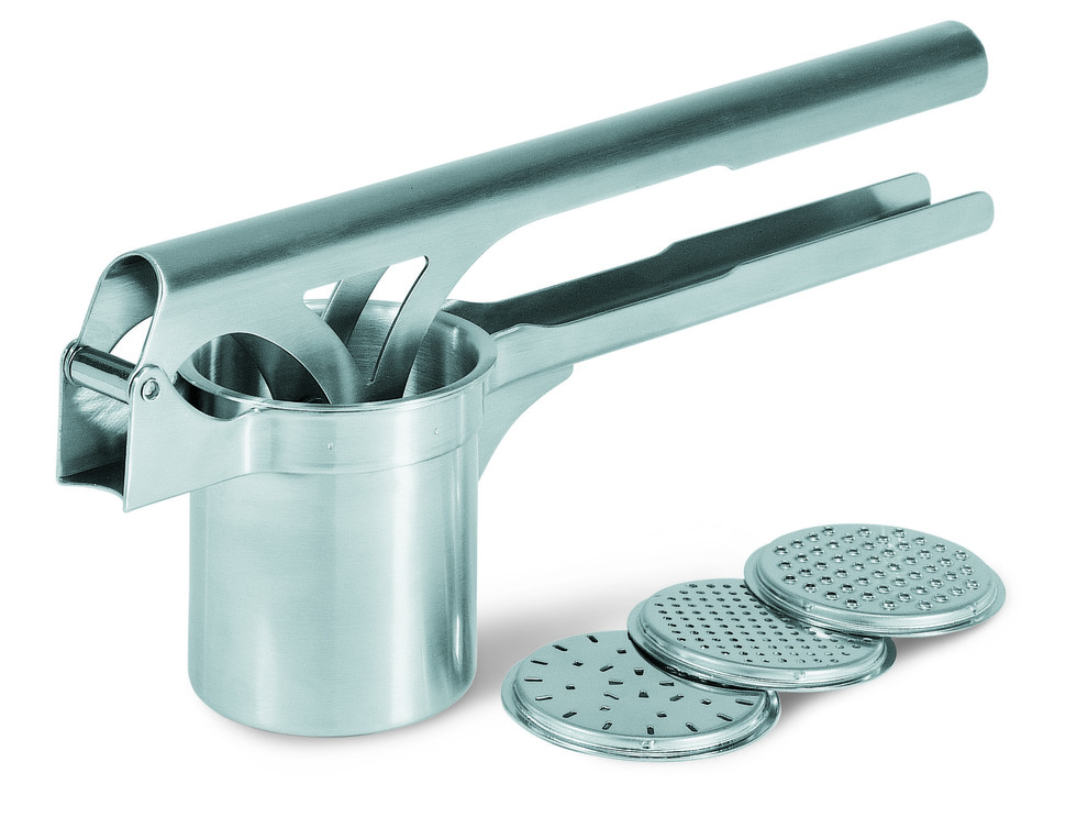 La presse à pomes de terre et à Spaetzle TRI STAR® est un outil polyvalent, idéal pour une cuisine variée. Grâce aux 3 disques amovibles, réduisez en purée les pommes de terre, les légumes et les fruits, réalisez des spaghettis ou des Spaetzle faits main !