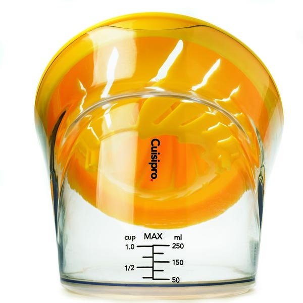 La base transparente à la ligne épurée et le pressoir au frais coloris orangé du presse-agrumes Cuisipro vous offrent une très grande stabilité et une contenance maximale confortable de 250 ml de jus fraichement pressé !
