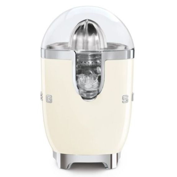 Ce presse-agrumes à pression manuelle de style années 50 est doté d'une puissance de 70W.