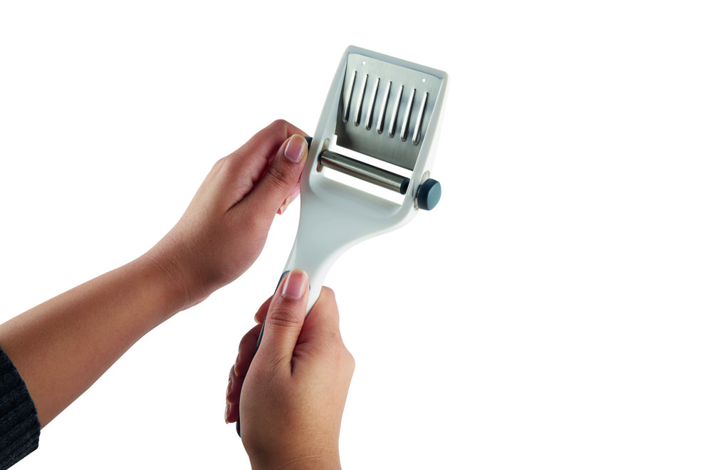 Découpez de fines tranches et régulières de votre fromage préféré avec ce racloir à fromage Zyliss ! Grâce à sa petite molette, vous pouvez régler avec précision l'épaisseur des trancheurs, de 0,8 mm à 2,5 mm. La lame en acier inoxydable vous assure un tranchant sans égal.