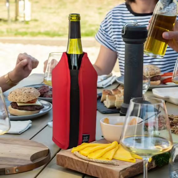 Le rafraîchisseur Frizz habillera et gardera au frais vos bouteilles de vins et champagnes de format 75cl grâce à son élastique extensible. Son design a été étudié pour épouser au plus près les formes de vos bouteilles. Rafraichissez une bouteille en 20 minutes et conservez la fraiche pendant 2 heures grâce à son gel rafraîchissant ultra-performant. A la maison ou en extérieur, dégustez vos vins à la juste température. Le rafraîchisseur Frizz deviendra l'indispensable de votre été !