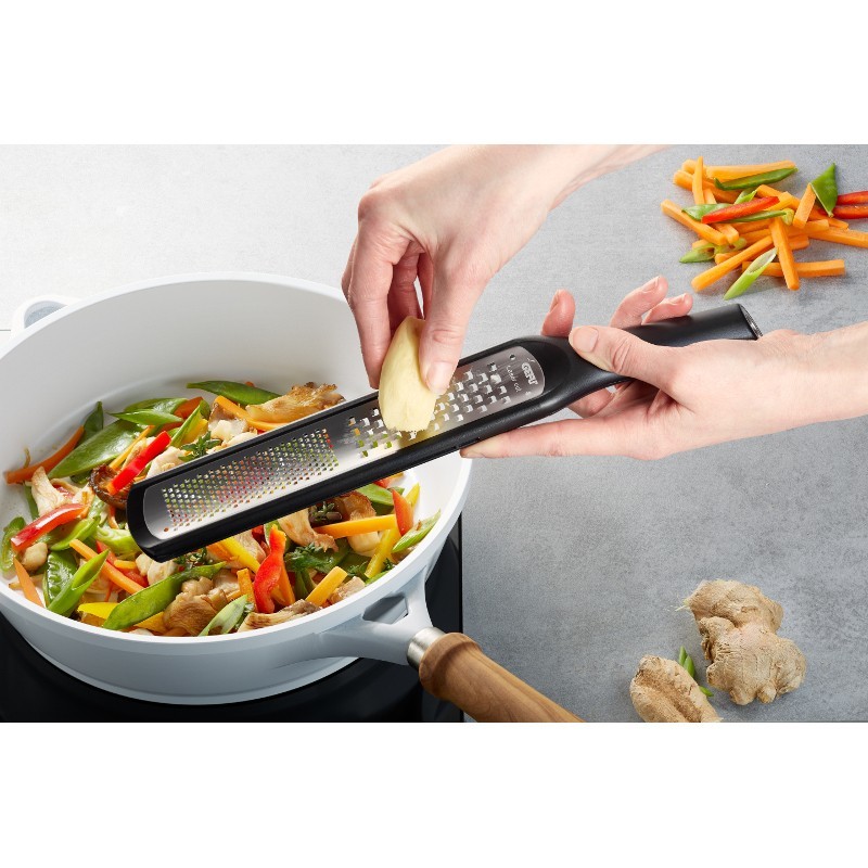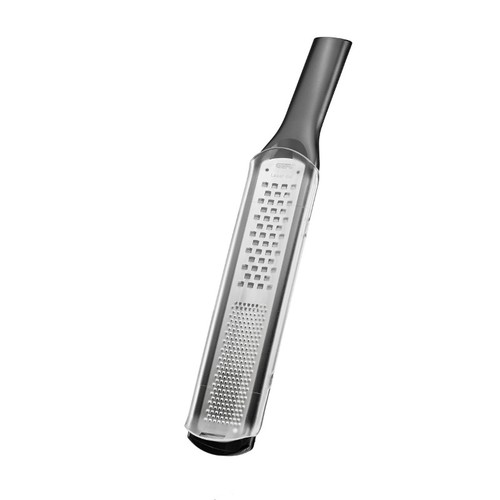 Rien ne résiste à la rape fine et grossière RAFINO de GEFU. Les deux parties de cette rape disposent de lames extrêmement acérées LASER CUT. Une partie vous permet une découpe très fine et délicate tandis que l'autre réalise copeaux plus larges, à vous de choisir ce dont vous avez besoin ! Un pied antidérapant vous assure stabilité et sécurité. Un étui de protection transparente sert aussi un réservoir avec déversement ciblé, pour viser directement votre plat ou assiette.