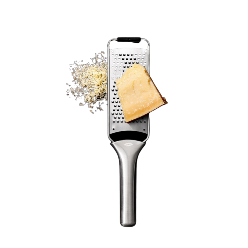 La râpe moyenne en inox OXO de la gamme STEEL réuni à la fois performance et élégance. Polyvalente, elle permet de râper les légumes, fromages à pâte dure, chocolat….