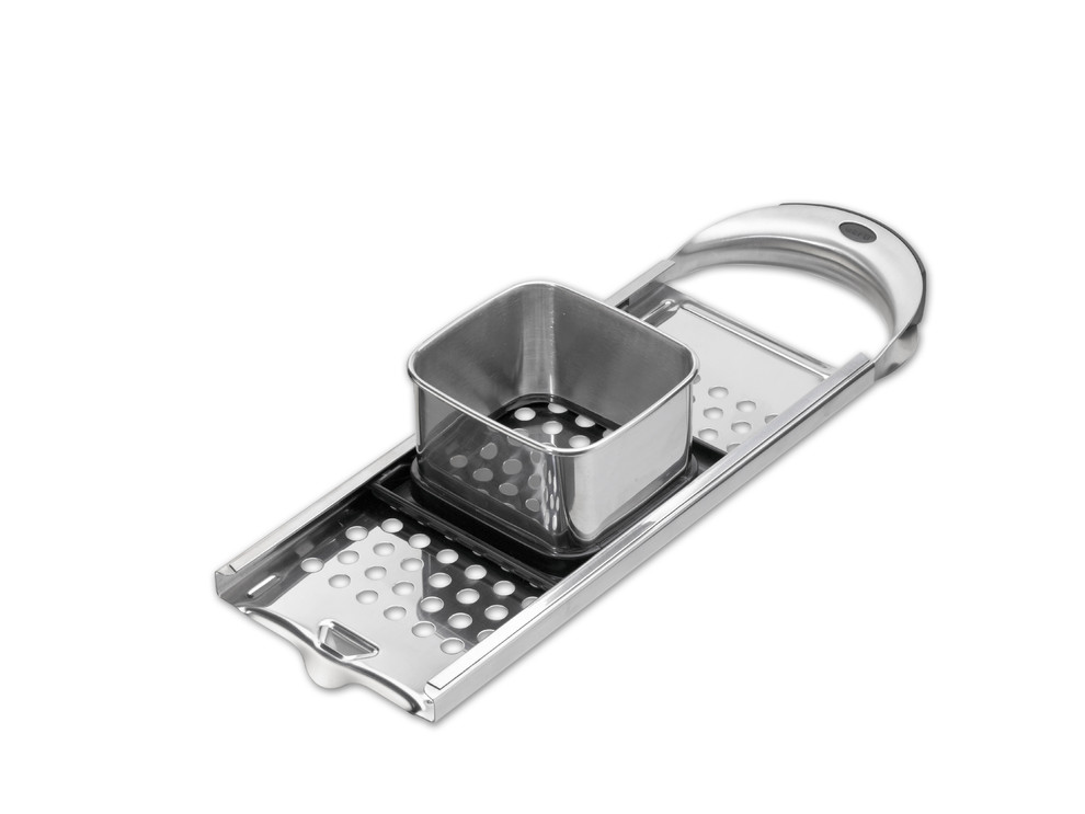 La manipulation est simple grâce au poussoir de pâte en acier inoxydable poli et grâce à la surface de repos, la râpe reste bien place sur le rebord de votre casserole et ne peut pas glisser.