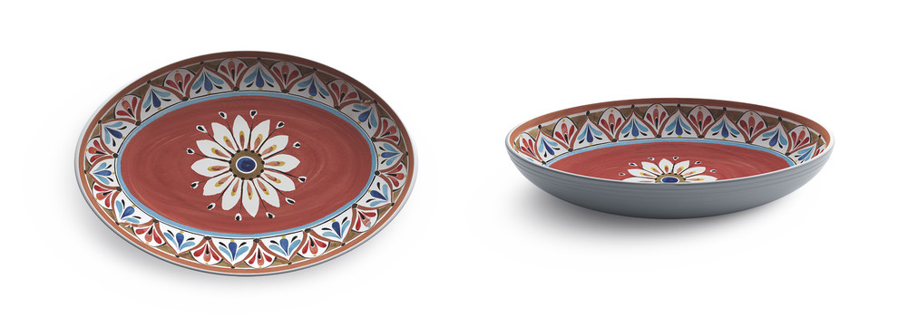 Fabriqué en Italie, ce plat est parfait pour le service de table pour de grandes occasions. Ses couleurs chaudes et ses formes rappellent la Méditerranée.