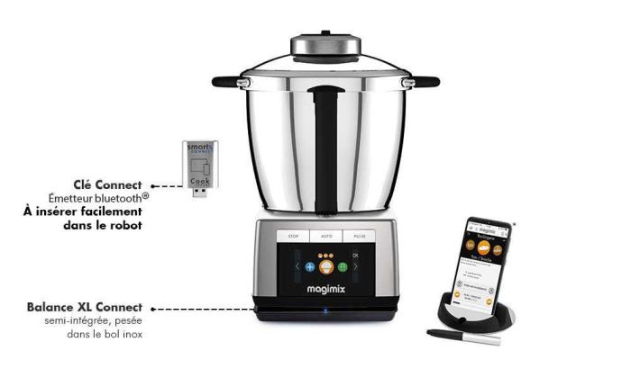 option supplémentaire: connectez votre Cook Expert premium xl!A l'aide du kit de connectivité SMART CONNECT profitez d'une cuisine en pas à pas sur votre smartphone ou tablette.La balance semi-intégrée se place directement sous le Cook Expert pour ne rater aucune recette.