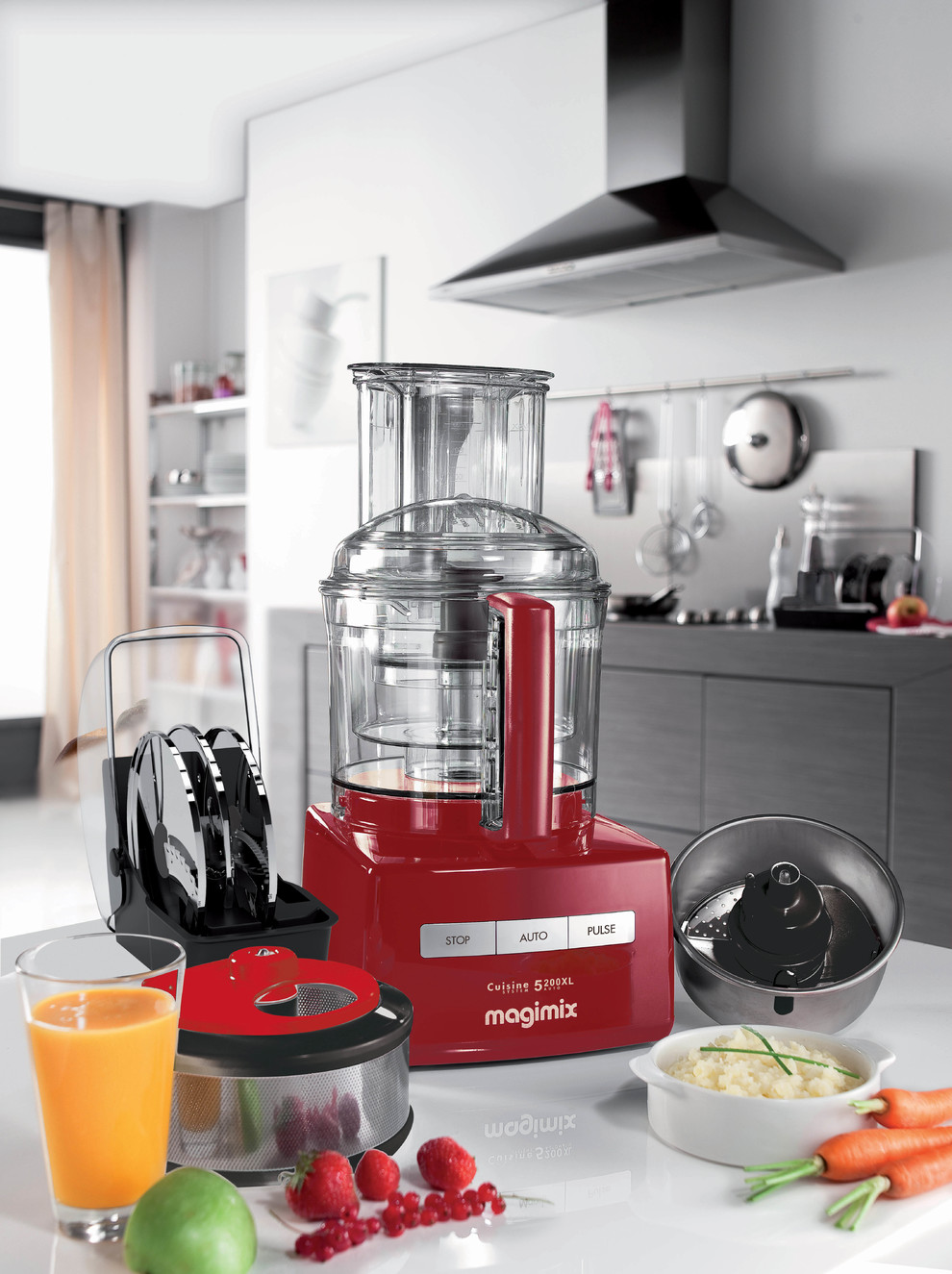 Nouveau Cuisine Système 5200 XL de Magimix est équipé d'un nouvel accessoire : la goulotte Extra Large. Elle permet d'émincer, râper et faire des bâtonnets de fruits et légumes entiers ou en gros morceaux et en grandes quantités.