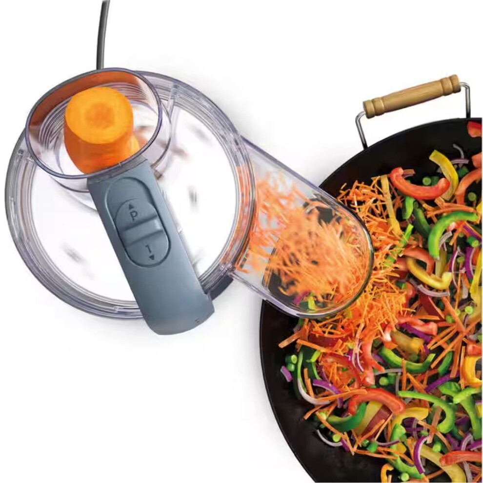 Le Multipro GO a la taille d'un mini-hachoir avec la polyvalence d'un robot multifonction ! Râper, émincer, mélanger, réduire en purée, hacher, émulsionner, pétrir, mixer : il sait tout faire grâce à ses couteaux et à son disque en acier inoxydable fournis.