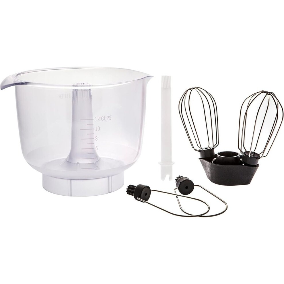 Bol 7 litres, Couvercle protecteur, Rouleau Couteau et corne, Crochet à pâte , Bol Batteur 3.5 L, Fouets à émulsions, Fouet à cookies.