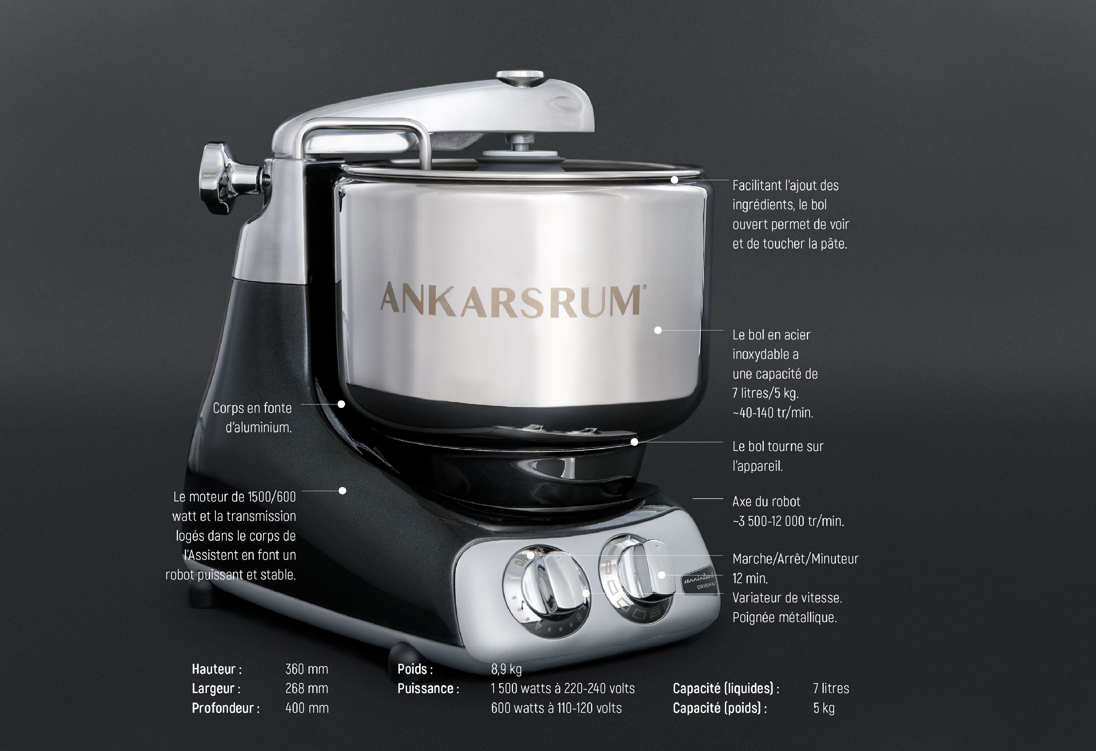 Assemblé et fabriqué à la main dans le village industriel d'Ankarsrumen depuis 1969, le robot Patissier Assistent est un trésor de l'industrie Suédoise. Contrôlé à chaque étape de fabrication individuellement, il permet une utilisation aux qualités exceptionnelles.