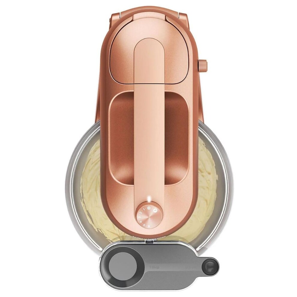 Utilisez votre robot dans n'importe quelle position grâce au garde-éclats rotatif de Go et faites un travail léger de mesure des ingrédients avec la cuillère intégrée. Ce sont les petites choses...