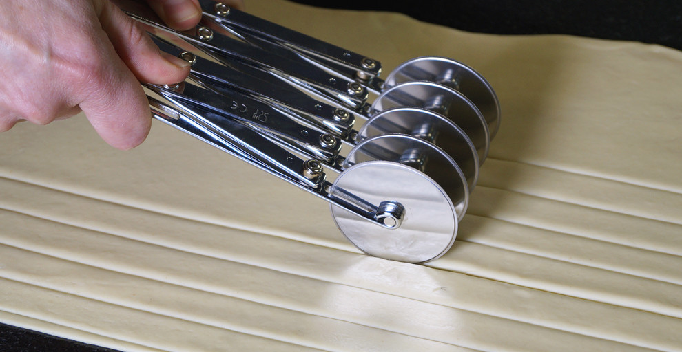 Le rouleau possède 5 roulettes tranchantes qui permettent une coupe aisée, rapide et précise de la pâte.