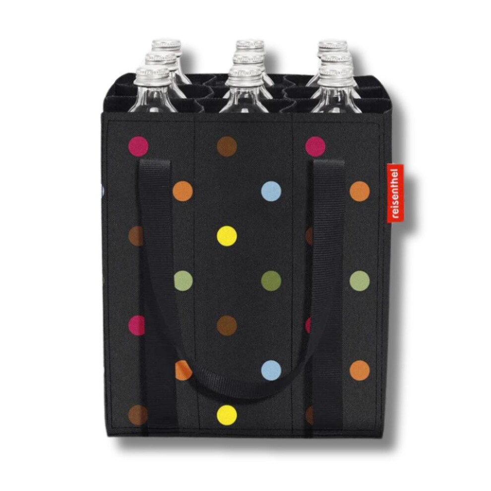 Le bottlebag de Reisenthel assure un transport compact et sécurisé, parfait pour les courses, pique-niques ou fêtes. Il s'adapte parfaitement aux paniers de vélo classiques. Des pois colorés sur fond noir : c’est l’un des designs emblématiques de Reisenthel ! Rafraîchissant, joyeux, adorable et très apprécié, car il ne se démode jamais. Un véritable classique intemporel qui devient rapidement un compagnon favori. Astuce : avec nos modèles dots, vous ferez également sensation en cadeau !