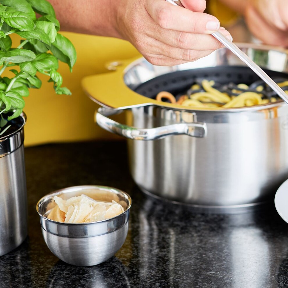 Harmonie entre forme et fonction pour ce saladier qui permet de préparer et servir directement salades, sangria, desserts. Le petit modèle est idéal pour les sauces, cacahuètes, biscuits apéritifs et conserver de petits restes. Avec bord verseur anti goutte.