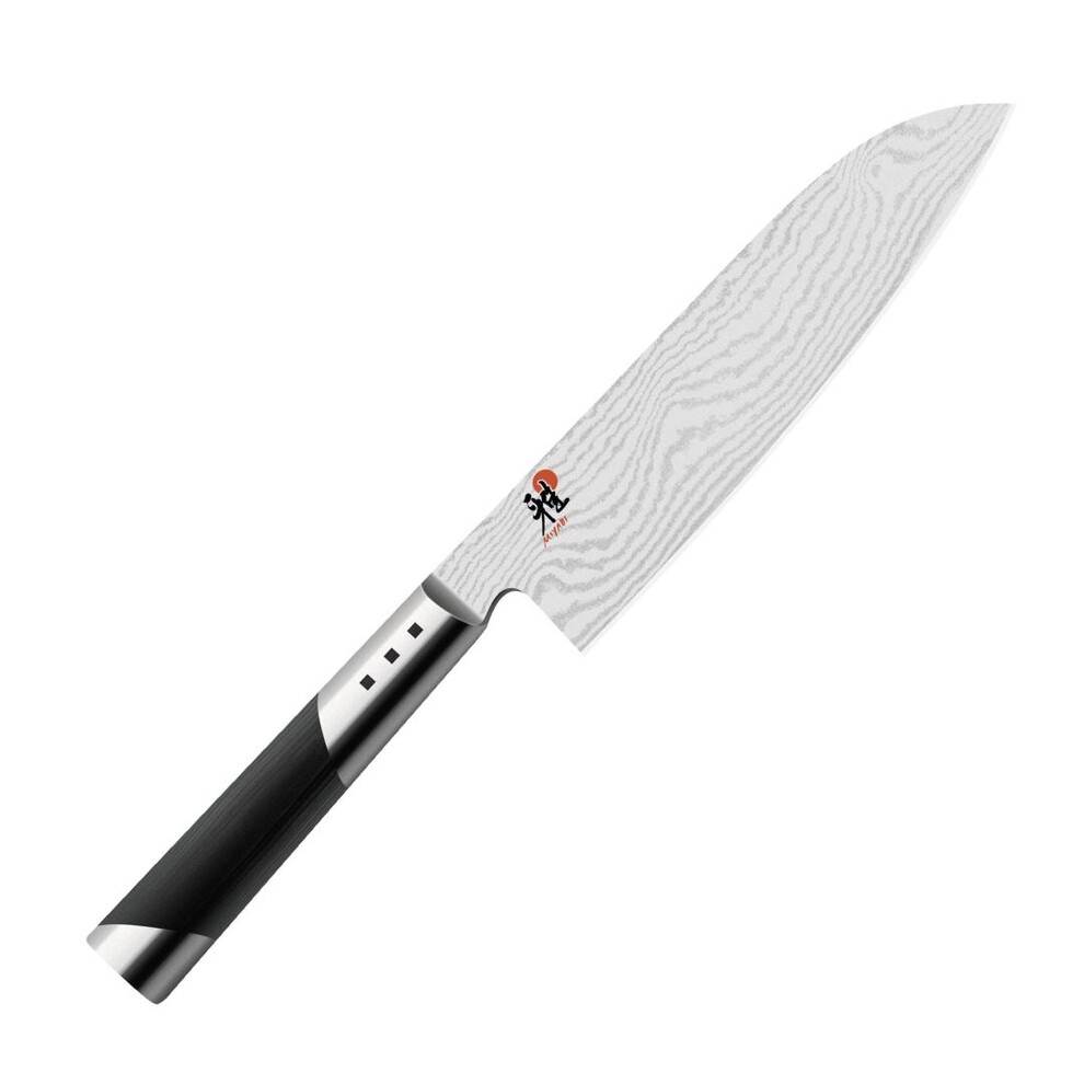 Le Santoku : Ce couteau de chef japonais, dont le nom signifie « trois bonnes choses », est conçu pour exceller dans trois domaines :