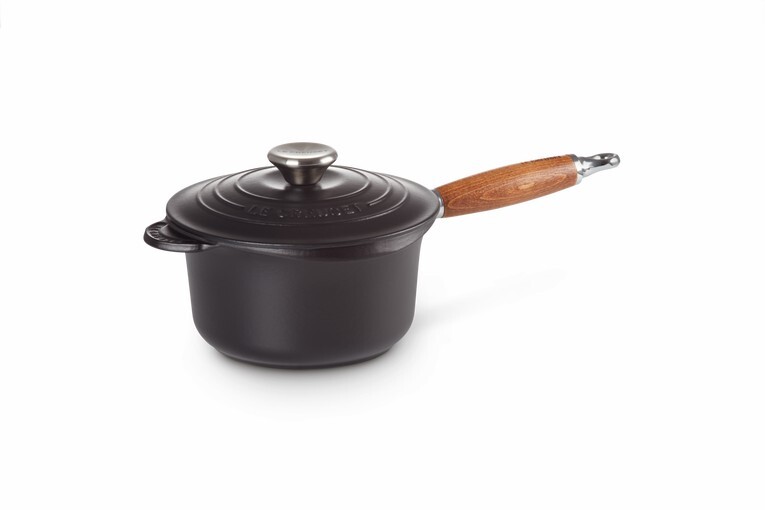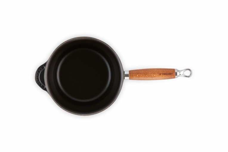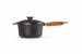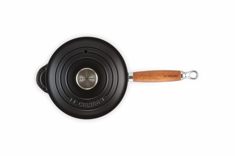 Saucier en fonte émaillée avec poignée bois avec couvercle 18 cm Noir Mat