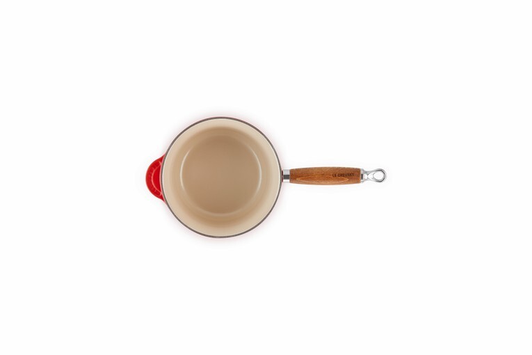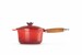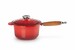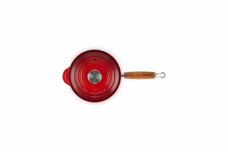 Saucier en fonte émaillée avec poignée bois avec couvercle 18 cm rouge Cerise