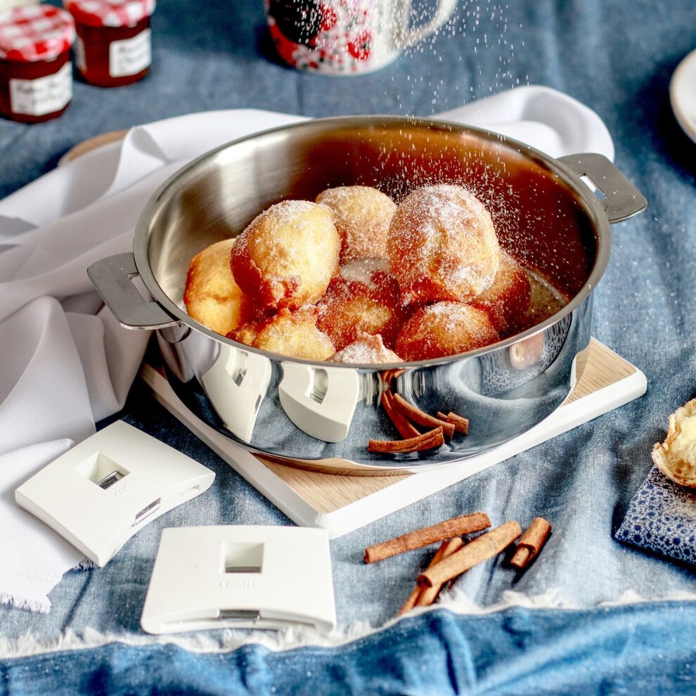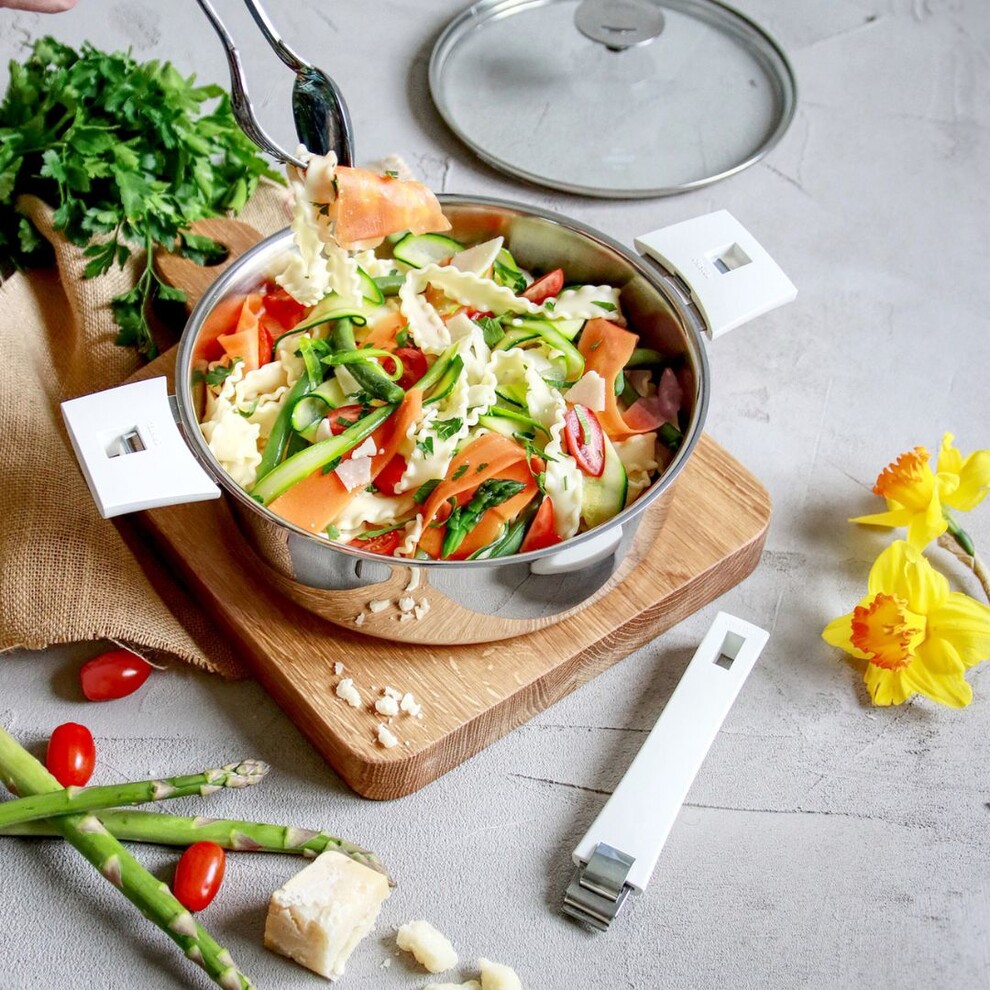 La collection Mutine amovible vous permet de passer de la cuisson au service grâce à sa fonction « Cook & Serve » qui transforme chaque ustensile en élégant plat de service. Multifonction, passez d’une casserole à un faitout, d’une poêle à un plat à four et d’une sauteuse en un plat de service d’un simple geste. La poignée amovible vous offrira également un rangement compact : chaque article s’emboite les uns dans les autres pour un gain de place optimal dans votre cuisine.