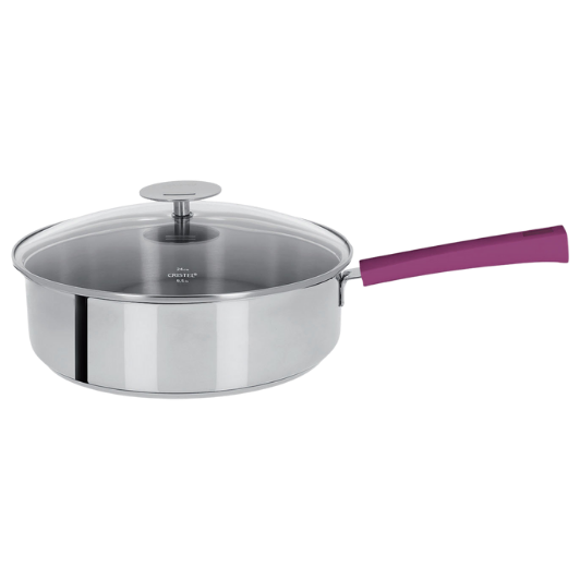 La sauteuse ø 24 cm tout inox et son couvercle en verre bombé et inox de la collection Mutine à poignée fixe cassis