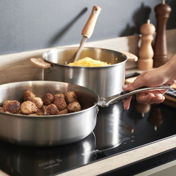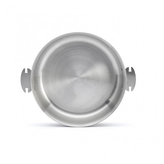 L’inox multicouche permet de maîtriser les cuissons grâce à la conduction homogène de la température sur l’ensemble du corps de l’ustensile et lui confère aussi une forte réactivité tant à la montée, qu’à la descente en température. Cette collection n’est pas dotée d’un fond diffuseur qui réduirait ses performances.